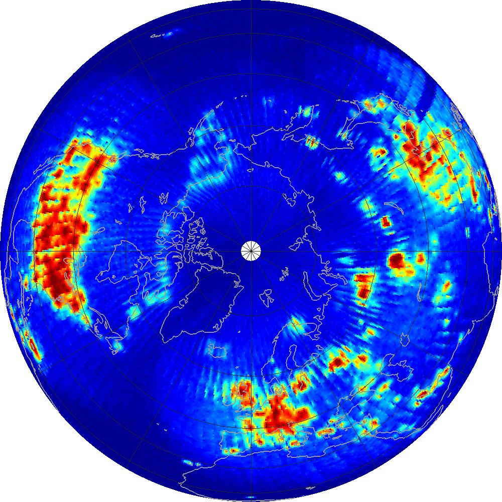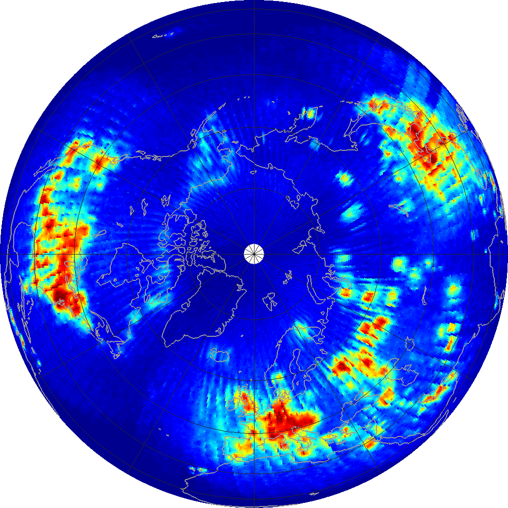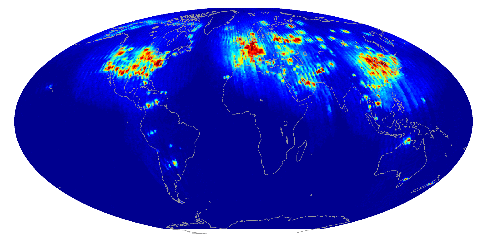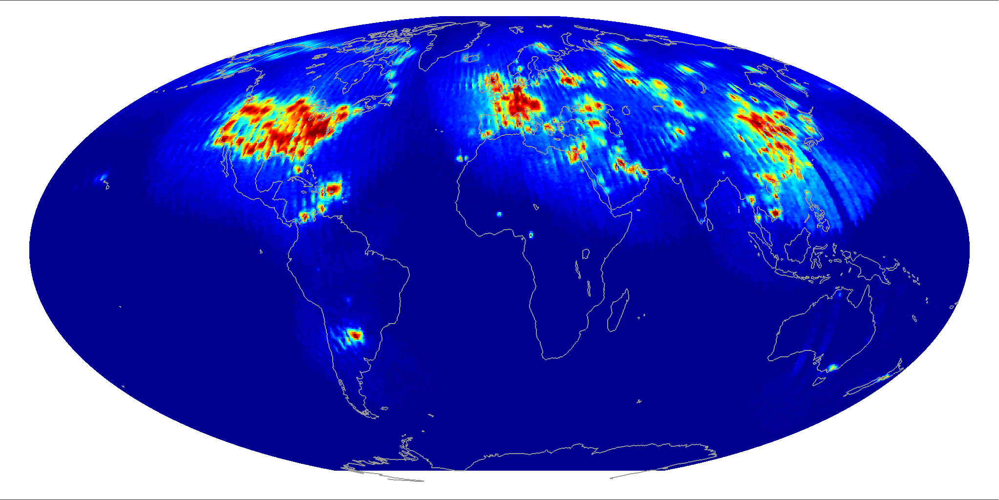 The images below (click to enlarge) show global monthly RFI for ascending (southward) passes as detected by the scatterometer (Le Vine and de Matthaeis, 2014).