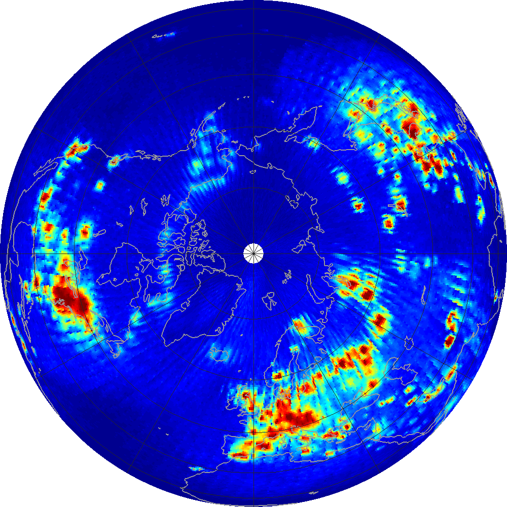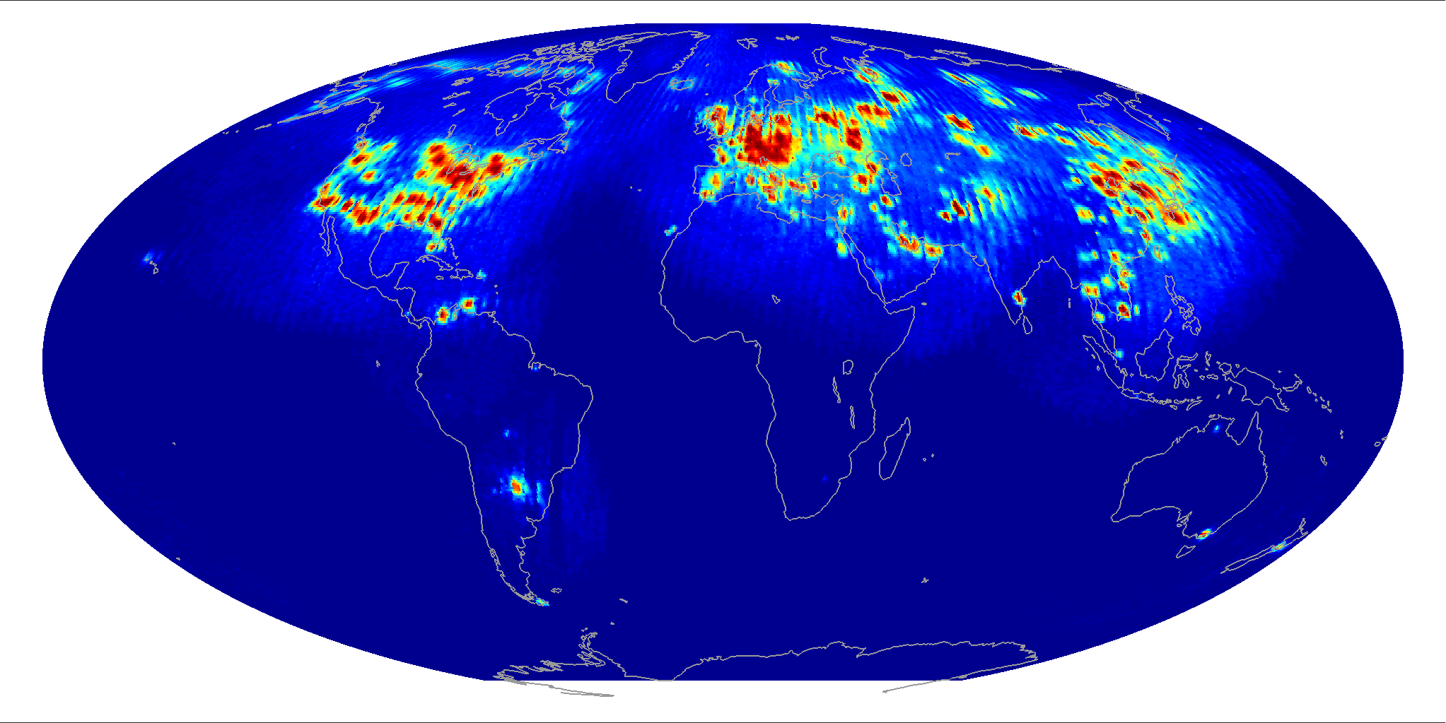 The images below (click to enlarge) show global monthly RFI for descending (southward) passes as detected by the scatterometer (Le Vine and de Matthaeis, 2014).